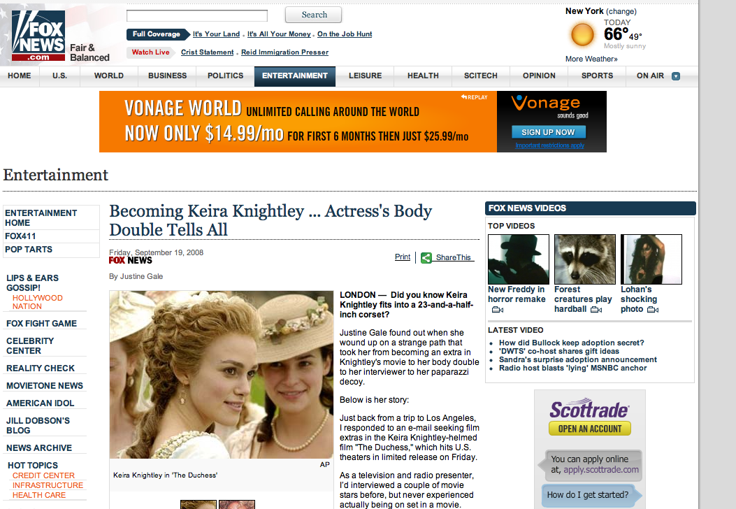 Find out how I went from 'Rags to Riches' when I wound up on a strange path as Keira Knightley's 'acting double' in the oscar-winning movie 'The Duchess.'